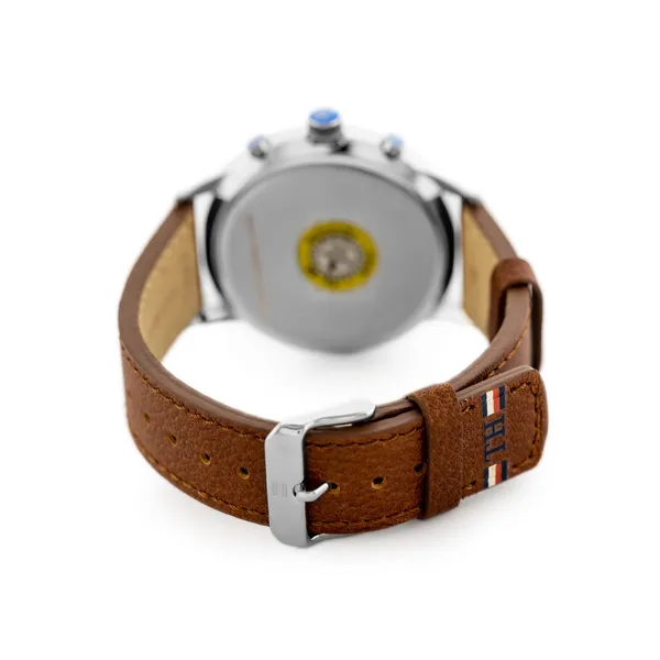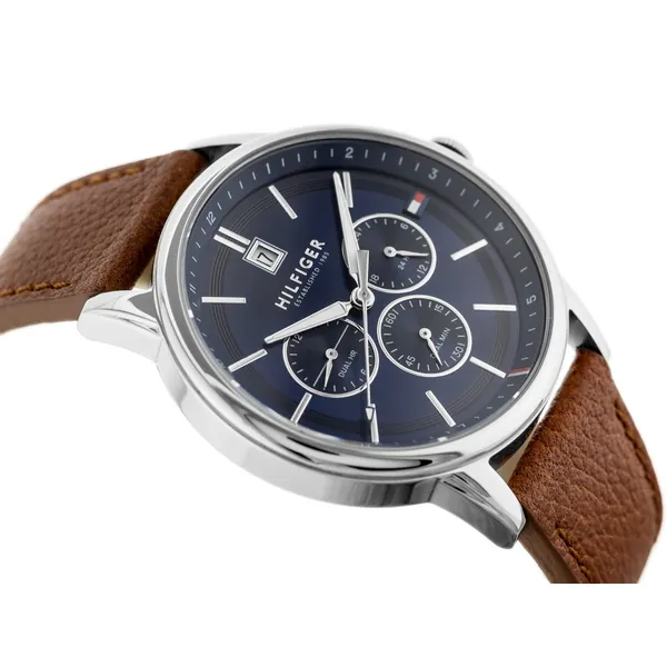 Tommy Hilfiger Kyle férfi kvarc karóra, kék számlap, barna bőrszíj, 44 mm
