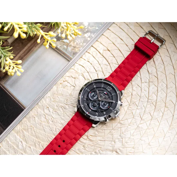 Tommy Hilfiger Luca férfi karóra, 50 mm, piros szilikon szíj, WR50, quartz
