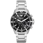 Męski zegarek Emporio Armani AR11360 Diver to elegancki męski zegarek, który został przygotowany z myślą o wszystkich miłośnikach mody i najnowszych stylistycznych trendów. Bransoleta oraz koperta wykonane zostały ze stali szlachetnej. Ten model zegarka czaruje unikatowym, bardzo charakterystycznym designem ponieważ każdy z elementów jest tu przemyślany i ściśle związany z aspektem funkcjonalnym. Jeśli szukasz zegarka na długie lata, to wybór tego modelu o czarnej tarczy będzie strzałem w dziesiątkę