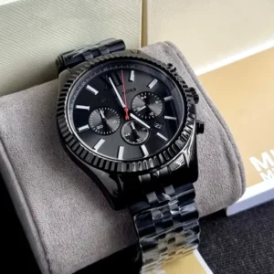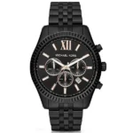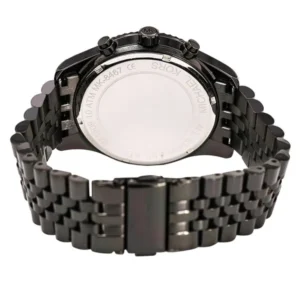 Model Michael Kors MK8467 to elegancki męski zegarek na bransolecie w kolorze czarnym wykonanej ze stali szlachetnej. Wyposażony jest w precyzyjny mechanizm kwarcowy, dzięki któremu zegarek dokładanie pokazuje aktualną godzinę. Dostępne funkcje to chronograf, datownik dnia miesiąca oraz 24-godzinne wskazanie czasu. Tarczę ochrania mineralne, odporne na zarysowania szkiełko.
