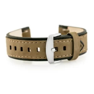 A bézs-fekete, 22 mm-es valódi bőr óraszíj puha tapintásával és erős varrásával kényelmes, mégis tartós viseletet kínál. A szabványos rugós stiftnek köszönhetően percek alatt kicserélheted, elegáns ezüstcsatja pedig azonnal új megjelenést ad órádnak.
