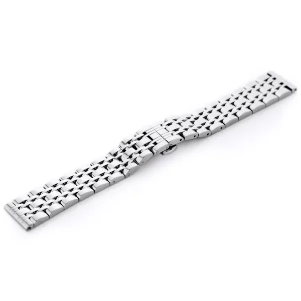 Egy minőségi, teljes egészében nemesacélból készült óraszíjat kínálunk, amely ezüst színével és kifinomult pillangó zárjával friss, elegáns külsőt ad kedvenc karórájának.