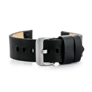 Puha, fekete marhabőr óraszíj 22 mm-es fülekkel rendelkező órákhoz, amely kényelmes viseletet és elegáns megjelenést biztosít. Egyszerűen cserélhető, nikkelmentes ezüst csatja tartós és bőrbarát.