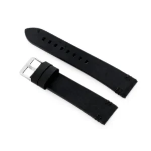 A prémium minőségű, fekete természetes bőr óraszíj elegáns megjelenést és kényelmes viseletet biztosít mindennapi és alkalmi óráihoz. Az ezüstszínű, rozsdamentes acél tűcsat stabil és könnyen kezelhető, a varrott fekete szálak pedig növelik a tartósságot.