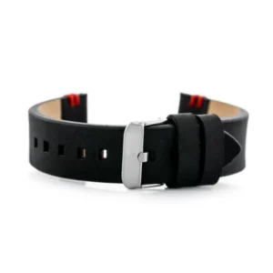 A természetes bőrből készült, piros varrással díszített 22 mm-es óraszíj elegáns, mégis sportos megjelenést kölcsönöz, miközben puha tapintásával kényelmes viseletet nyújt egész nap. Az állítható hossz és az ezüst csat gyors, biztonságos illeszkedést garantál.