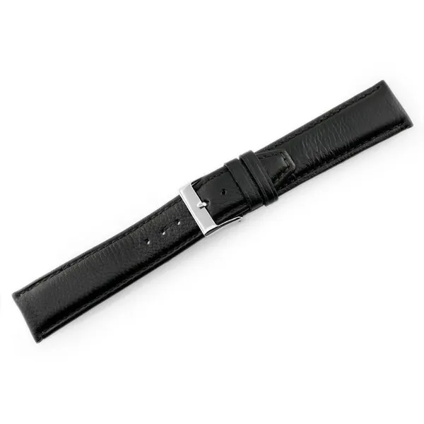 • Fekete prémium természetes bőrszíj karórához, 22 mm, ezüst csattal