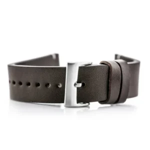 A természetes marhabőrből készült, sötétbarna szíj kontrasztos fehér varrása elegáns frissítést ad bármely 22 mm-es karórának. Gyorsan cserélhető és 12–17,4 cm-es csuklóméretre állítható, így mindennap kényelmes viselet.