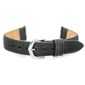 Prémium, sötétszürke valódi bőr óraszíj 14 mm-es tengelytávú órákhoz, amely puha tapintásával egész napos kényelmet nyújt. Az ezüstszínű, rozsdamentes csat biztonságos és elegáns rögzítést kínál, a gyorskioldó rudaknak köszönhetően pedig percek alatt cserélhető.