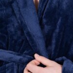 Az otthoni pihenés elengedhetetlen kelléke ez a puha, prémium minőségű női plüss köntös, amely sötétkék árnyalatával elegáns megjelenést és meleg komfortot biztosít.