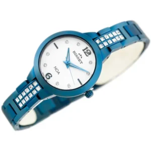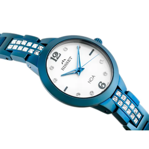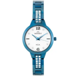 Elegáns, svájci pontosságú kiegészítőt keres? Ez a Bisset női karóra kék PVD bevonatú acél tokjával és csillogó cirkónia-díszes karkötőjével minden alkalommal kifinomult megjelenést biztosít.