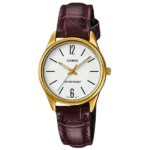 A Casio Collection LTP-V005GL-7B női karóra letisztult, klasszikus stílust kínál a mindennapokra és különleges alkalmakra egyaránt. A 28 mm-es, aranyszínű rozsdamentes acél tokban dolgozó japán kvarc szerkezet megbízható pontosságot nyújt, a jól olvasható fehér számlap pedig elegáns vertikális indexeket kapott. A karcolásálló mineralüveg és a 3 ATM vízállóság gondoskodik arról, hogy az óra a rohanós napokon is helytálljon.