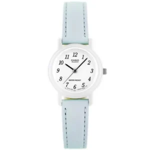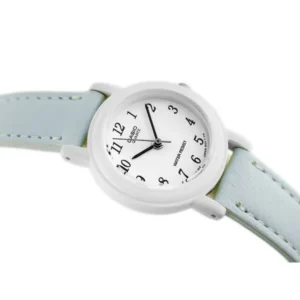 Könnyű, 25 mm-es Casio női karóra kék bőr szíjjal és WR30 vízállósággal, amely pontos kvarc szerkezetével, strapabíró mineralüvegével és jól olvasható fehér számlapjával teszi gondtalanná a mindennapokat. Elegáns díszdobozban érkezik, így azonnal és egyszerűen ajándékozható születésnapra, ballagásra vagy bármilyen különleges alkalomra.
