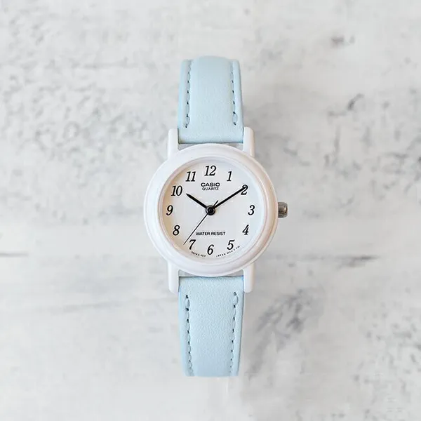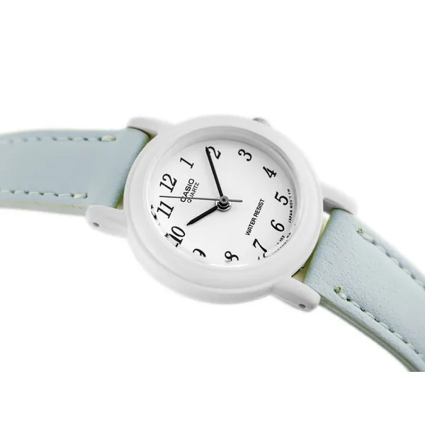 A Casio LQ-139L-2B női karóra játékos kék árnyalata és pehelykönnyű kialakítása egyszerre teszi divatossá és kényelmessé. A mindössze 25 mm-es fehér tokot ásványi üveg védi a karcolásoktól, a pontos kvarc szerkezet pedig gondoskodik a megbízható időmérésről.