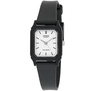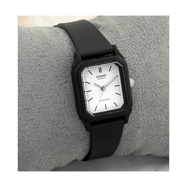 Casio LQ-142-7E női karóra, fekete műanyag szíj, fehér számlap, WR30