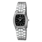 Casio LTP-1169D-1A női karóra az időtlen elegancia és a modern funkcionalitás találkozása. A fényes ezüstszínű, rozsdamentes acél szíj és tok finom kontrasztban áll a letisztult fekete számlappal, így a modell hétköznapi viselethez és alkalmi öltözékhez egyaránt illik.