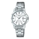 A Casio LTP-V004D-7B női karóra a letisztult elegancia és a mindennapi megbízhatóság tökéletes találkozása. A fényes ezüst színű, nemesacél tok és karkötő karcsú vonalai kiemelik a fehér számlap finomságát, így az óra könnyedén illeszkedik üzleti öltözethez és alkalmi ruhákhoz egyaránt. A diszkrét dátumkijelző praktikusan segíti a napi szervezést, míg a pontos kvarc szerkezet gondoskodik róla, hogy soha ne késs el fontos pillanatokról.