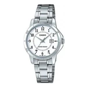 Casio LTP-V004D-7B női karóra, ezüst nemesacél szíj, fehér számlap, dátum