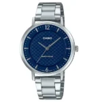 Az elegáns Casio LTP-VT04D-2A női karóra a letisztult dizájnt ötvözi a mindennapi megbízhatósággal. Rozsdamentes acél tokja és branszólata fényesen csillan, miközben a mélykék számlap diszkréten vonzza a tekintetet. A karcsú, 35 mm-es tok és mindössze 8 mm vastagság kényelmes viseletet biztosít, így a karóra nem akad bele a ruházatba.
