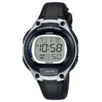 A Casio LW-203-1AV női digitális karóra a sportos elegancia és a mindennapi praktikum találkozása. Könnyű, fekete műanyag tokkal és szíjjal, valamint ezüst tónusú lünettával készült, így egész nap kényelmes viseletet biztosít.