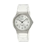Lehengerlően egyszerű és ultrakönnyű, a Casio MQ-24S-7BEF női karóra hétköznapi viselethez és sportos outfithez is illik. 36 mm-es, áttetsző fehér műanyag tokja és puha szíja alig érezhető a csuklón, a gyöngyházas számlap pedig letisztult fehér indexekkel gondoskodik a gyors leolvashatóságról.