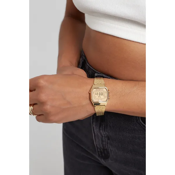 Válaszd a Casio Vintage LA680WGA-9D női karórát, ha a hetvenes évek ihlette arany dizájnt modern digitális funkciókkal szeretnéd ötvözni. A vékony, 29×9 mm-es tok és a finomszemcsés rozsdamentes acél szíj elegáns megjelenést és kényelmes viseletet biztosít egész nap.