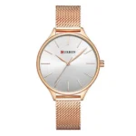 A Curren 9024 női karóra modern technológiát és időtlen, elegáns kialakítást egyesít, így kiváló választás mindennapi viselethez és alkalmi öltözethez egyaránt. Az ezüst számlapon rózsaarany indexek és jól leolvasható mutatók teszik különlegessé, a finom, rózsaarany fémszíj pedig diszkrét csillogást kölcsönöz.