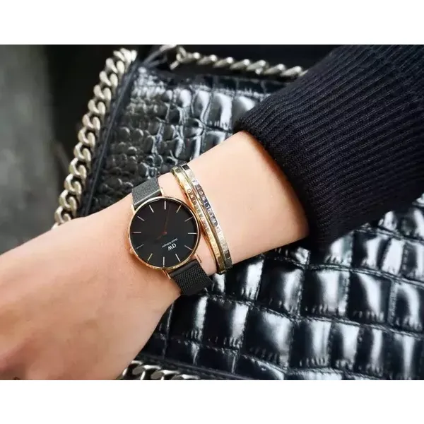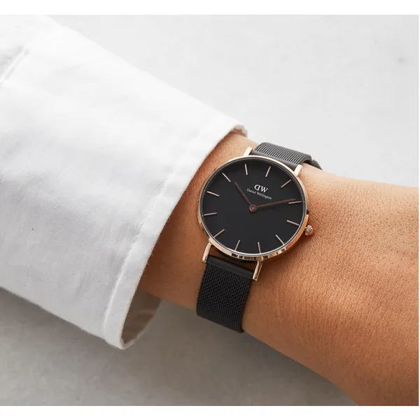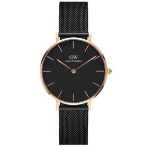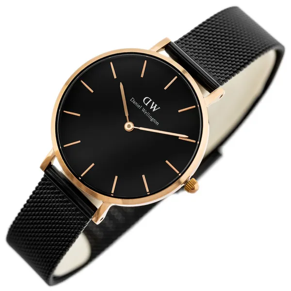 Daniel Wellington női kvarc karóra 32 mm, fekete számlap, rózsaarany hálós szíj