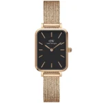 A Daniel Wellington Quadro DW00100432 női karóra a minimalista elegancia megtestesítője. A 20 mm-es, téglalap alakú tok és a keskeny, 10 mm-es rózsaarany színű rozsdamentesacél szíj tökéletesen simul a női csuklóra. Fekete számlapján a rózsaarany jelölések és mutatók finom kontrasztot alkotnak, így bármilyen öltözékhez illik.