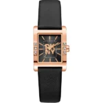 Az elegáns DKNY DK1L008L0035 női karóra letisztult, modern megjelenést kínál téglalap alakú, rózsaarany fényű, nemesacél tokkal és diszkréten csillogó kristálydíszítéssel. A fekete, minimalista számlapon a márka aranyszínű logója segíti a gyors időleolvasást, míg a karcálló mineralüveg óvja a kifinomult belsőt.