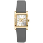 Az aranyszínű, kristálydíszes tok és az ezüst számlap azonnal eleganciát kölcsönöz, a szürke bőrszíj pedig kényelmes viseletet ad. Megbízható japán kvarc szerkezetével és karcolásálló ásványi üvegével ez az óra stílusos, mégis praktikus kiegészítő.