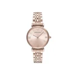 Az Emporio Armani Gianni T-Bar AR11059 női karóra időtlen eleganciát és modern funkcionalitást ötvöz. A rozéarany színű, nemesacél tokot és karkötőt csillogó cirkóniákkal díszített számlap egészíti ki, amelyet karcálló ásványi üveg véd. A precíz, elemről működő kvarc szerkezet pontos időmérést garantál, míg az antiallergén bevonat kényelmes viseletet biztosít.