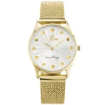 Elegáns, antiallergén arany bevonatú női karóra japán Miyota kvarc szerkezettel, amely pontos időmérést és tartósságot kínál. Az ezüst számlap, a karcálló minerál üveg, a 3 ATM vízállóság, valamint az állítható csat kényelmes illeszkedést és stílusos megjelenést nyújt nap mint nap.