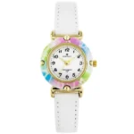 Puha fehér bőrszíjával és könnyű arany tokjával ez a kvarc karóra kényelmes viseletet és jól olvasható számlapot ad a gyerekeknek, miközben WR30 vízállósága gondtalan használatot biztosít.