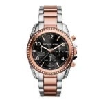 Michael Kors Blair MK6093 női karóra a kifinomult elegancia és a mindennapi használhatóság tökéletes ötvözete. A két tónusú, rozéarany-ezüst nemesacél tok és bracelet látványos keretet ad a mélyfekete számlapnak, amelyet karcálló ásványi üveg véd. A precíz kvarc szerkezetnek köszönhetően mindig pontos időt mutat, míg a kronográf és a 24 órás segédszámlap extra funkcionalitást kínál.