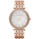 A Michael Kors Darci MK3220 női karóra kifinomult rózsaarany árnyalatával és gyöngyházfényű fehér számlapjával könnyed eleganciát kölcsönöz minden öltözéknek. A teljesen rozsdamentes acél tok és szíj tartósságot biztosít, a cirkóniaköves lünetta pedig ragyogó ékszerhatást nyújt. A megbízható, elemről működő kvarc szerkezet pontos időmérést garantál, míg a 50 m-es vízállóság a mindennapi fröccsenések ellen is véd.