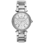 Az elegáns, Mini Parker kollekcióhoz tartozó MK5615 női karóra minden öltözéket látványosan emel ki ragyogó, cirkóniával ékesített lünettájával és teljesen ezüst tónusú, rozsdamentes acél tokjával és csatjával.