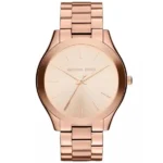 A Michael Kors Slim Runway MK3197 női karóra elegáns, minimalista formavilágával és teljes rozsdamentes acél kivitelével emeli ki megjelenésed. A kifinomult rozéarany árnyalat az óratoktól a számlapon át egészen a háromsoros szíjig harmonikusan visszaköszön, így könnyedén kombinálható ékszereiddel.
