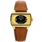 Elegáns arany tokjával és kényelmes barna bőrszíjával ez a téglalap alakú karóra tökéletes egyensúlyt teremt a stílus és a funkcionalitás között. Megbízható japán MIYOTA kvarc szerkezete pontos időmérést biztosít, míg karcálló ásványi üvege és WR30 vízállósága a mindennapokban is megóvja.