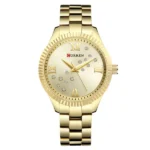 Ez az aranyszínű, cirkóniával ékesített női karóra elegáns megjelenést és pontos kvarc működést kínál, 30 m vízállósággal és karcálló minerál üveggel. Állítható fémszíjjal és ajándék díszdobozzal érkezik, így azonnal viselhető vagy ajándékozható.