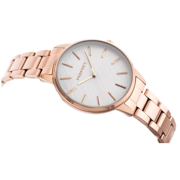Az elegáns, rózsaarany színű Perfect női karóra kifinomult megjelenést kölcsönöz a mindennapokban és különleges alkalmakon egyaránt. Japán Miyota kvarc szerkezete megbízhatóan és pontosan méri az időt, miközben a 34 mm-es, karcsú, mindössze 7 mm vastag tok kényelmes viseletet garantál.
