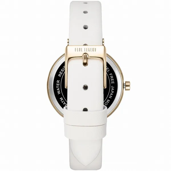 Női karóra arany tokkal, fehér bőrszíjjal, 32 mm, Paul Lorens