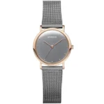 Egészítse ki öltözékét a letisztult, skandináv stílusú Bering Classic női karórával, amely kiváló minőségű anyagokat és időtálló dizájnt ötvöz. A rozéarany színű, 26 mm-es rozsdamentes acél tokot sík, rendkívül karcálló zafírüveg védi, míg a szürke, 14 mm széles milánói szíj kényelmes viseletet biztosít. A kvarc szerkezet pontos időmérést nyújt, 3 ATM vízállósága pedig megóvja a csepp- és fröccsenő víztől.