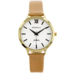 Az elegáns aranytokos, barna bőrszíjas karóra japán kvartz szerkezete pontos időt biztosít, míg karcálló ásványi üvege és 30 m-es vízállósága gondtalan mindennapi viselhetőséget nyújt. Kompakt 34 mm-es méretével kényelmesen illeszkedik szinte minden női csuklóra.