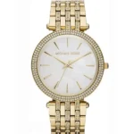 A Michael Kors Darci MK3219 női karóra elegáns kiegészítő, amely időtálló dizájnjával és ragyogó aranyszínű nemesacél kivitelével azonnal magára vonja a figyelmet. A gyöngyházfényű számlapot és a kristályokkal díszített lünettát karcálló ásványüveg óvja, míg a megbízható kvarc szerkezet pontos időmérést biztosít.