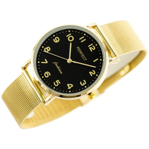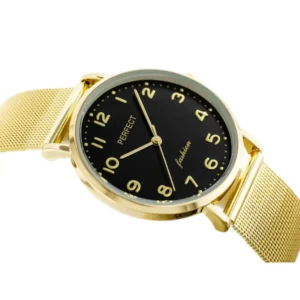 Női karóra Perfect F332, arany mesh szíj, fekete számlap, 36 mm