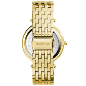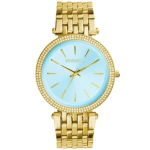 A Donoval Just Lady DL0033 női karóra ragyogó aranyszínű rozsdamentes acélból készült, így elegáns kiegészítője lehet mind a hétköznapi, mind az alkalmi öltözéknek. A pontos, elemről működő kvarc szerkezetet karcálló ásványi üveg védi, a türkiz számlap arany indexei pedig stílusos kontrasztot adnak.
