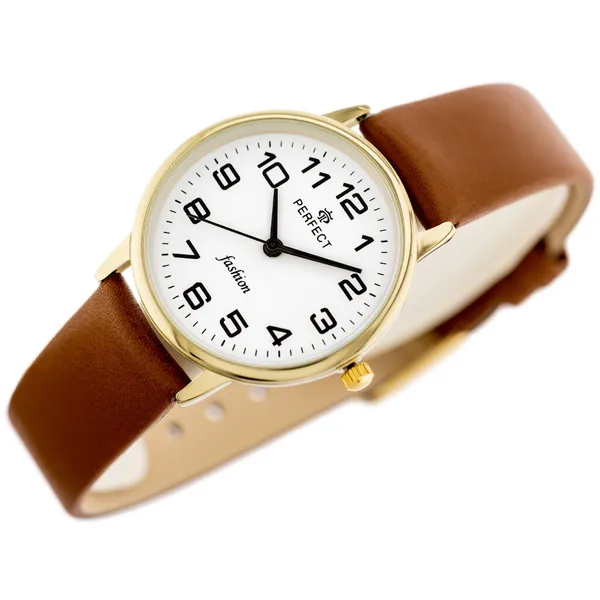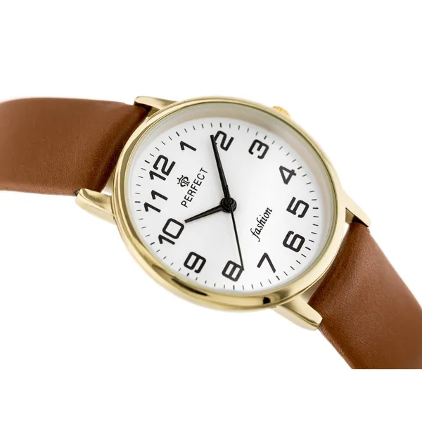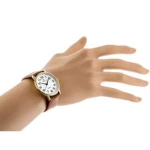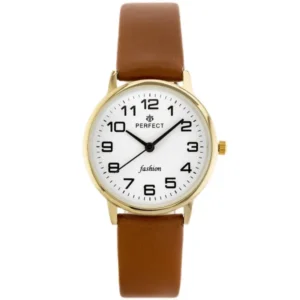 Az elegáns női karóra japán kvarc szerkezetének köszönhetően pontos időmérést biztosít, míg az aranyszínű, mindössze 7 mm vékony tok és a barna valódi bőrszíj kényelmes, kifinomult viseletet garantál a hétköznapokra és alkalmakra egyaránt.