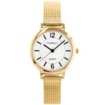 Az aranyszínű, rozsdamentes fémszíjjal és fehér, jól olvasható számlappal készült női karóra japán kvarc szerkezete pontos időmérést, WR30 vízállósága és karcálló minerál üvege pedig gondtalan, stílusos viseletet kínál a mindennapokra.