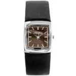 Az elegáns, négyzet alakú női karóra japán MIYOTA kvarc szerkezettel működik, így mindig pontos időt mutat. A strapabíró, IPS/IPG/IPB bevonatú ezüst tokhoz kontrasztos barna számlap és letisztult, ezüst indexek társulnak, melyeket karcálló ásványi üveg véd.