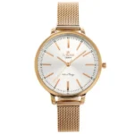 Az elegáns rozéarany női karóra japán kvarc szerkezete révén pontos időmérést biztosít, miközben az ezüst számlap és a fém szíj kifinomult megjelenést nyújt. Antiallergén bevonata és WR30 fröccsenésálló kialakítása gondtalan, mindennapi viseletet garantál.